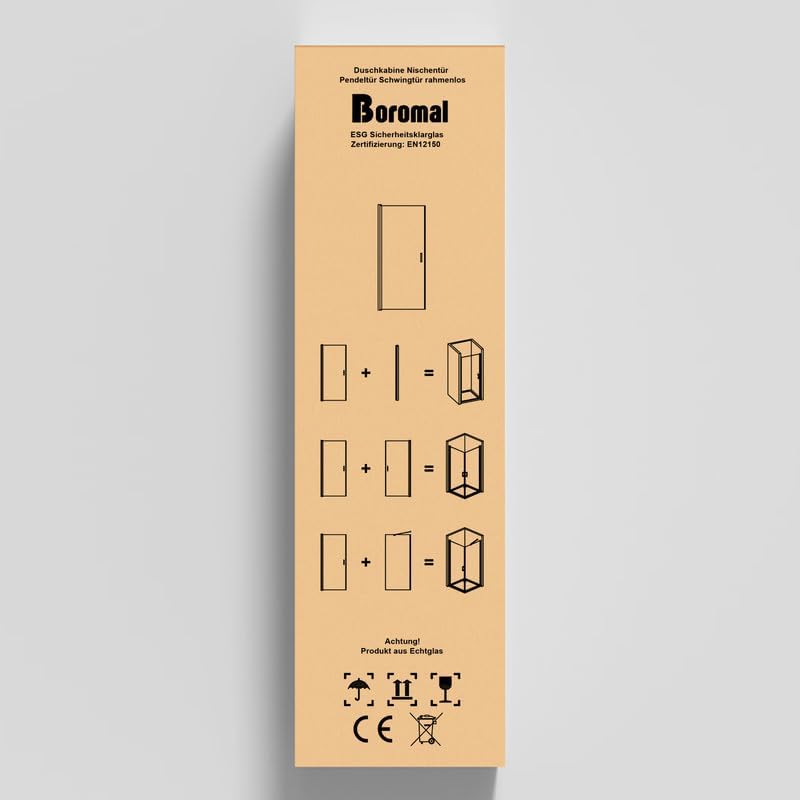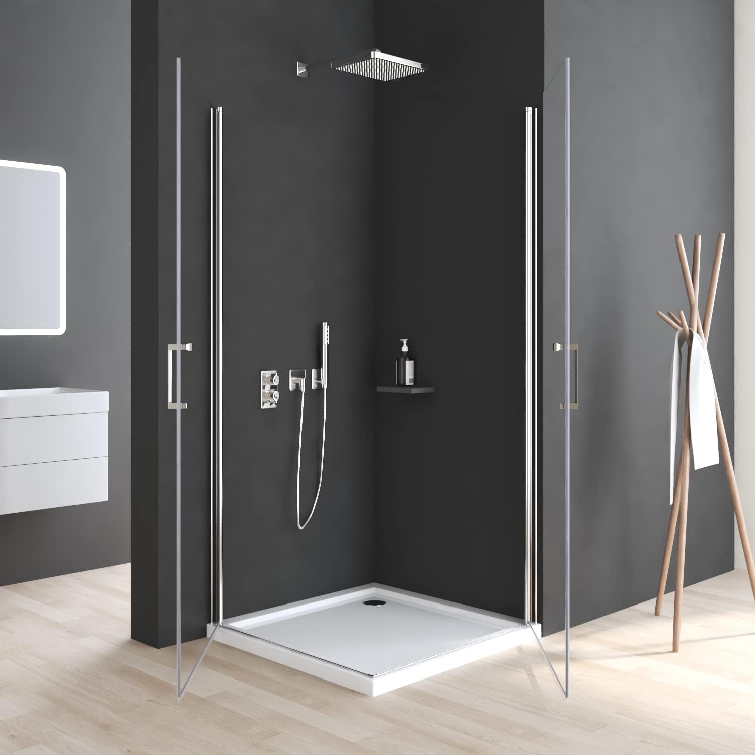 Boroyal Duschkabine Pendeltür Eckeinstieg Duschabtrennung 6mm NANO Beschichtung ESG Glas Schwingtür Duschwand Höhe 195cm